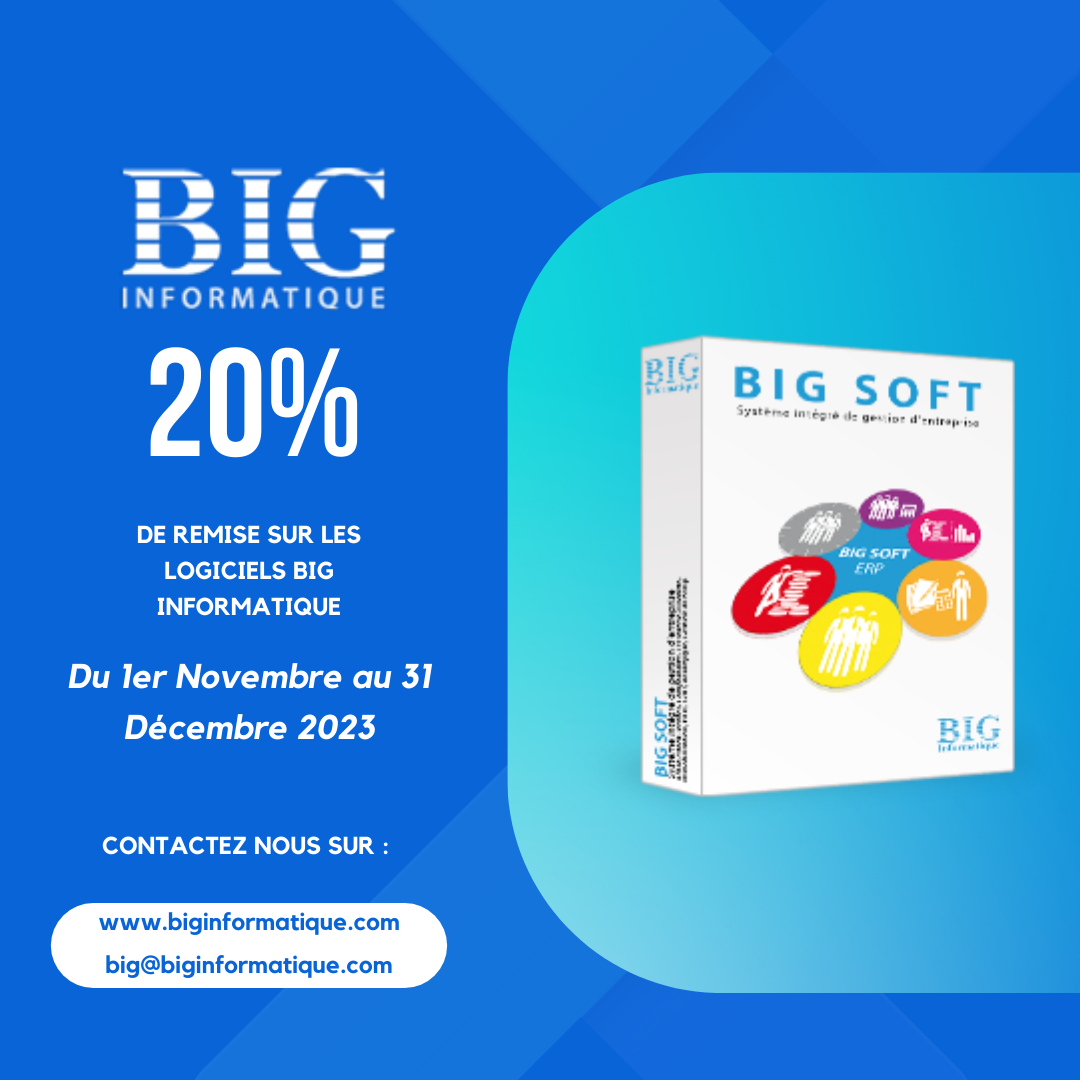 20% de remises sur les licences BIG Informatique, une promo que nous engageons à partir du 1er Novembre jusqu'au 31 Décembre 2023